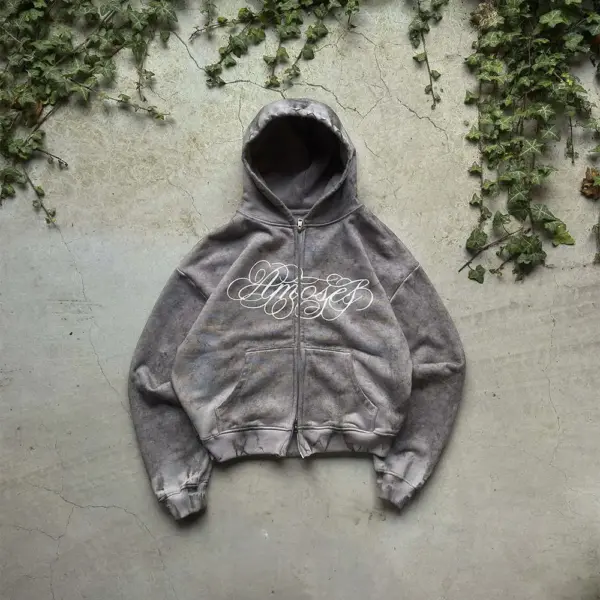 2025 American Retro New Fashion Street Striped Letter Printed Zipper Hoodie Long Sleeved Sweatshirt Men and Women Sports Top