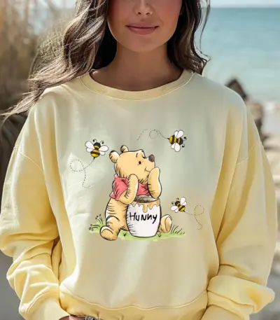 Disney Winnie The Pooh Print Womens Fleece Sweatshirt 100 Cotton Long Sleeve Crewneck Plus Size Oversized for Travel Shopping