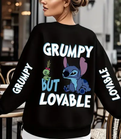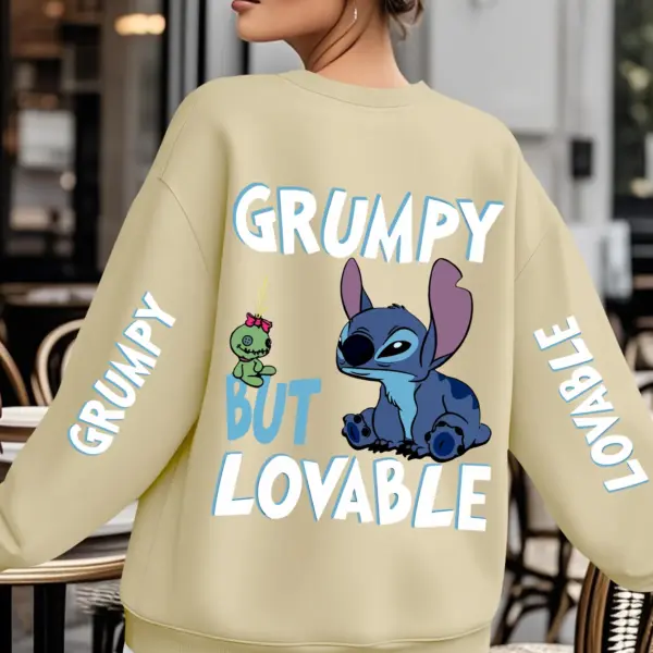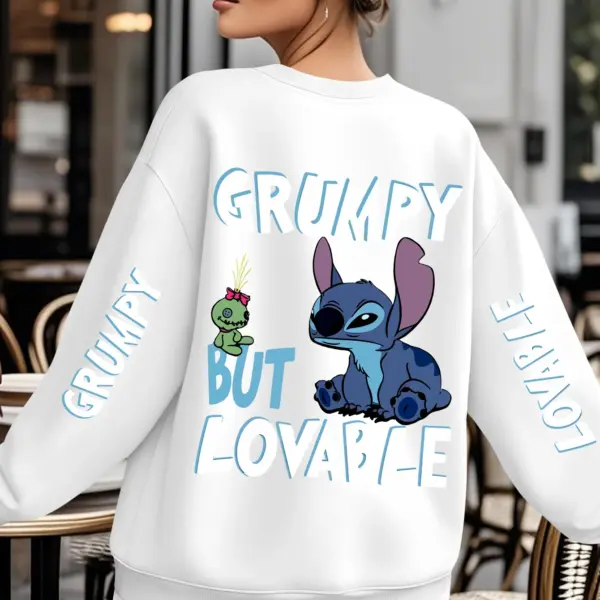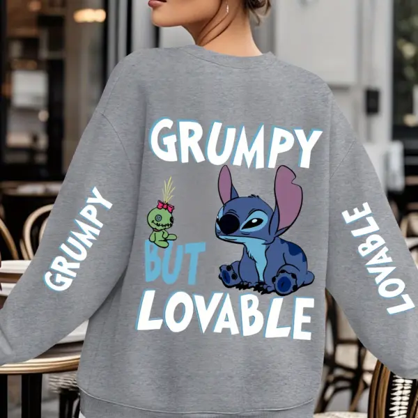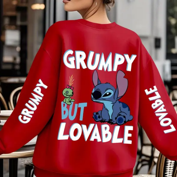 Disney Stitch Grumpy But Lovable Sweatshirt Women’s Men Cotton Hoodies Pullover Autumn Winter Fleece Oversized O-Neck Coat Tops