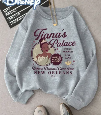 Disney women’s casual Tiana Princess New Orleans print stylish crew neck sweatshirt New fall/winter crew neck top
