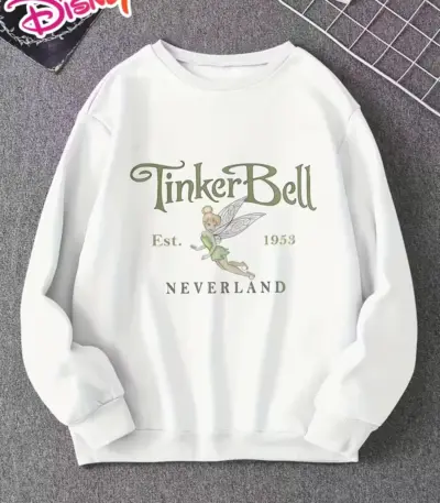 Disney Sparkling Tinker Bell Stars Sweatshirt Women’s Men Cotton Hoodies Pullover Autumn Winter Fleece Oversized O-Neck Top Coat