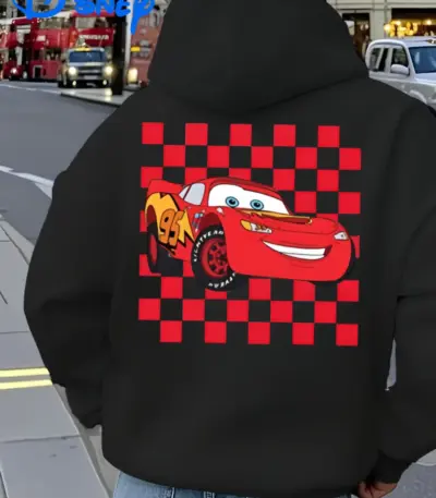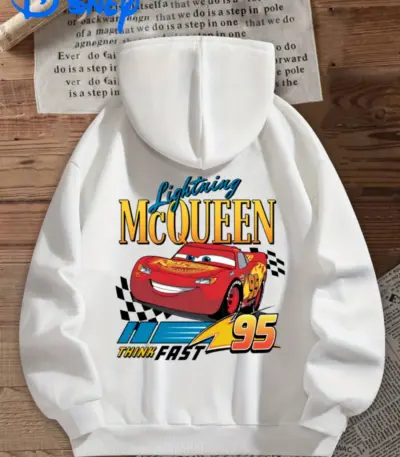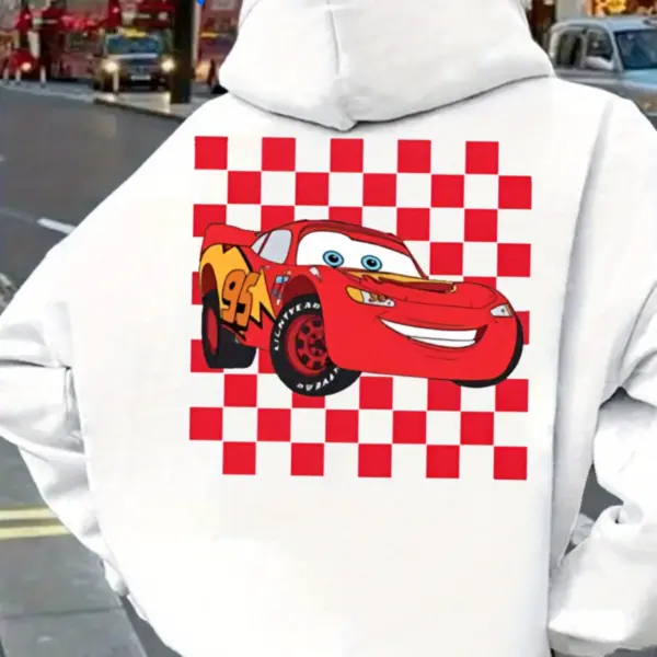 Disney Women’s Hoodie Lightning McQueen Racing Pattern Hoodie Suitable for Car Movie Fans Hoodie Disney Costume