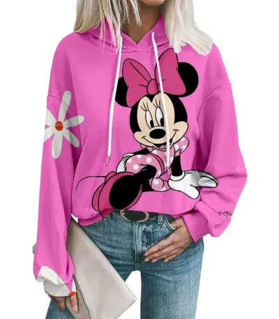 Disney Minnie Graphic Print Hoodie Cute Casual Sweatshirt Hooded Pullover for Women Perfect for Fall Winter Sweater Hoodie