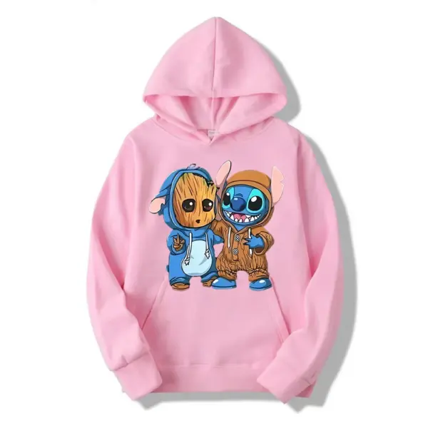 Disney Stitch Men Pullover Cartoon Anime Women Hoodies 2024 New Casual Autumn Winter Couple Oversized Sweatshirts Clothes Tops