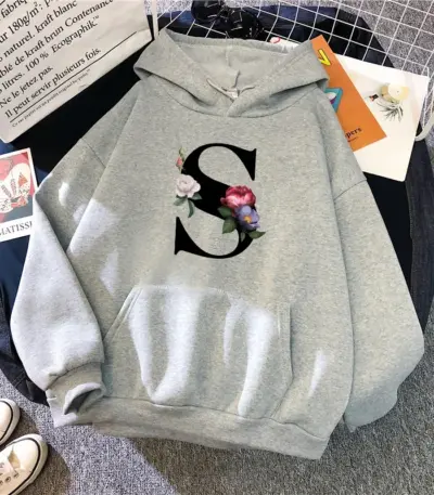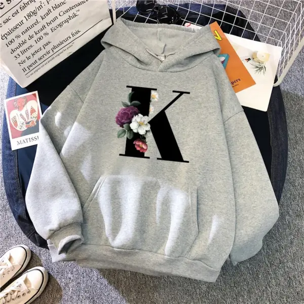 New in Womens Hoodies Casual Letters A-Z Printed Sweatshirts Sportswear Outdoors Sports Jogging Woman Clothing Running Grey Tops