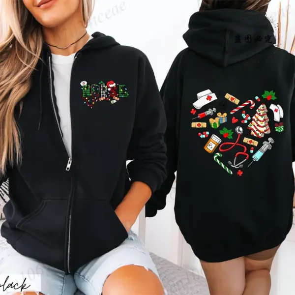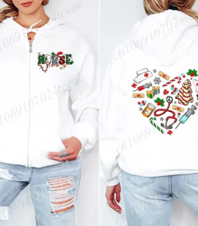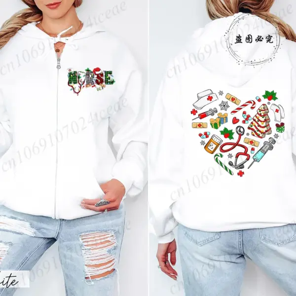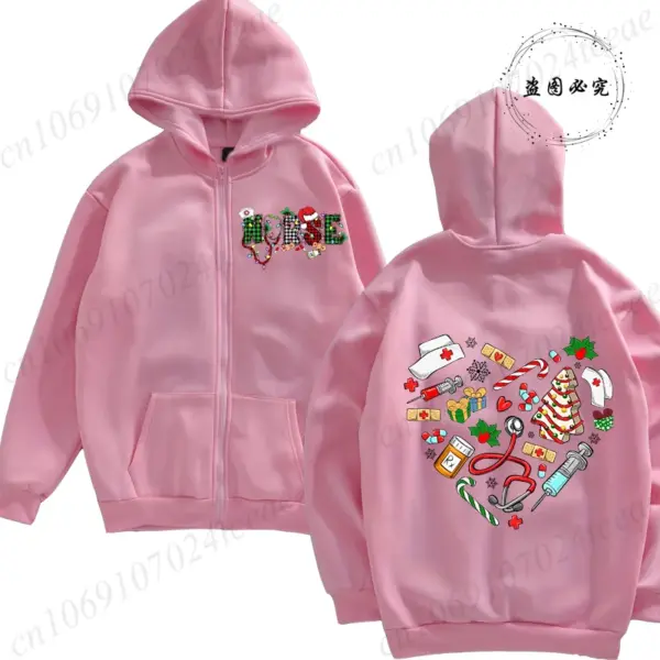 Nurse Christmas Hooded Jackets Fashion Women Personalized Warm Hoodies Casual Zipper Streetwear Christmas Nursing Sweatshirts