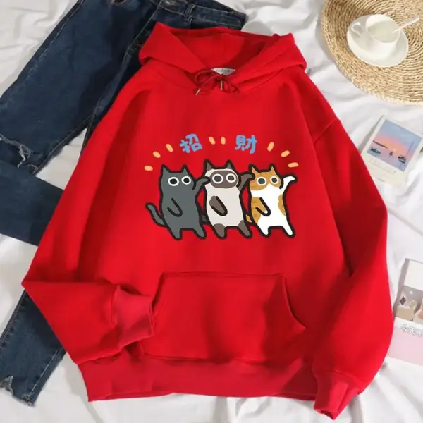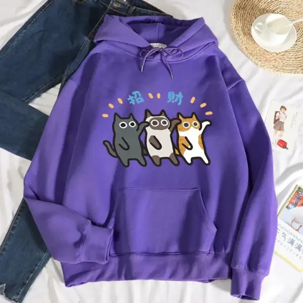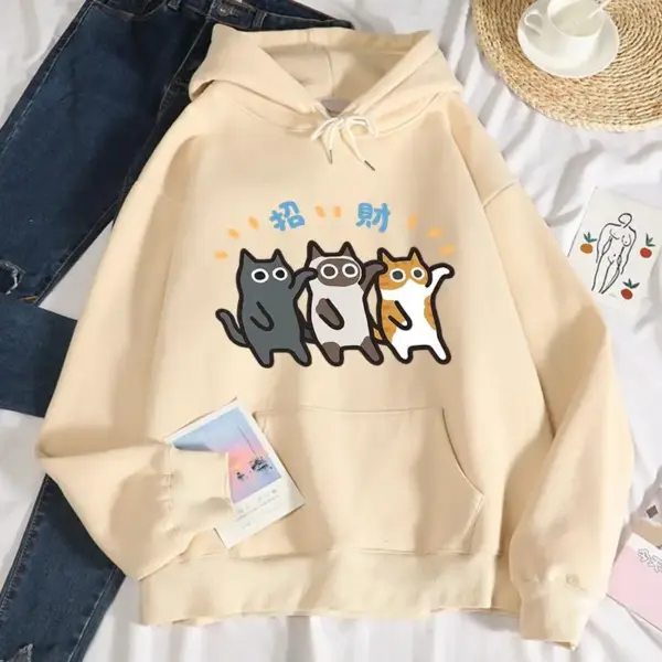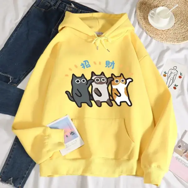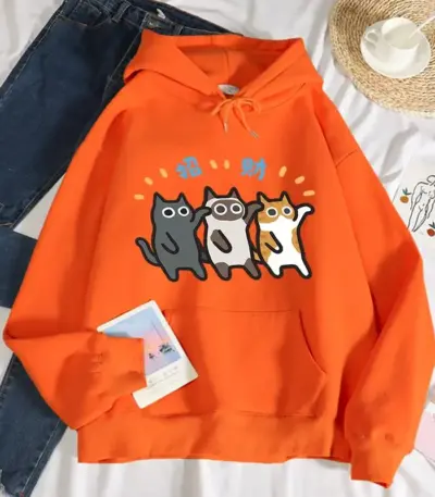 Orange Cat Siamese Printing Womens Sweatshirt Casual Loose Hooded New Soft Fleece Comfortable Hoodies Street Autumn Clothing