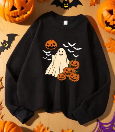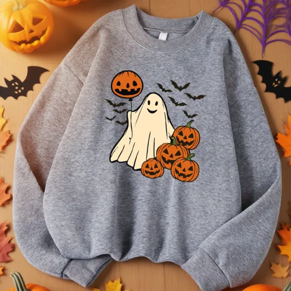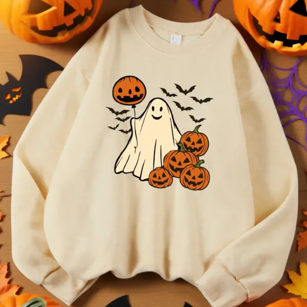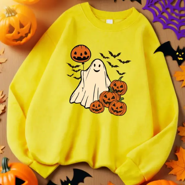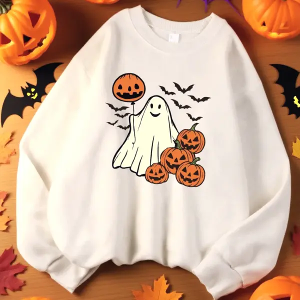 Pumpkin Balloon Ghost And Bat Pattern Sweatshirt Woman Sport Y2K Top Autumn Casual Sportswears Loose Hip Hop Sweatshirts