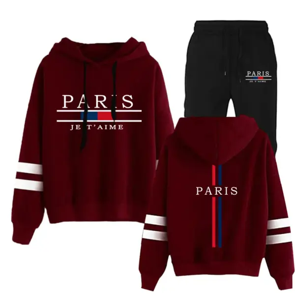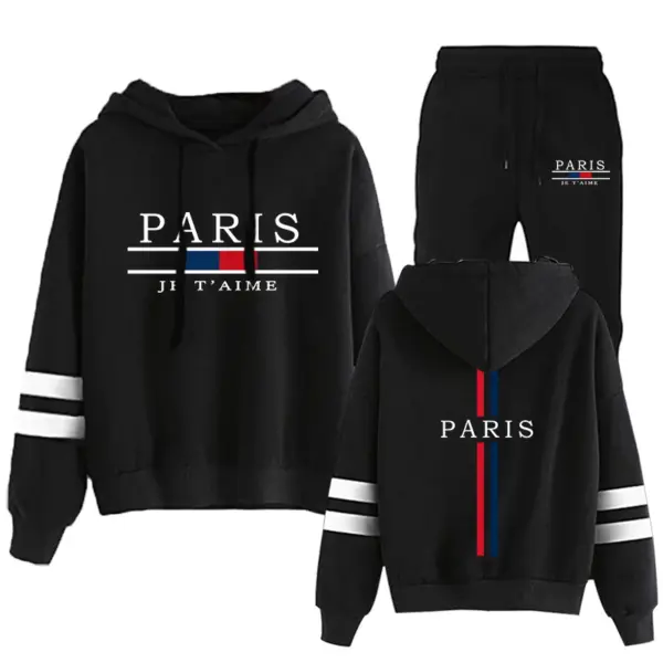 Paris Printed Womens Tracksuit Stripe Hoodies for Women Casual Sports Jogging Sweatshirts Outfits Fashion Street Women Pants Set