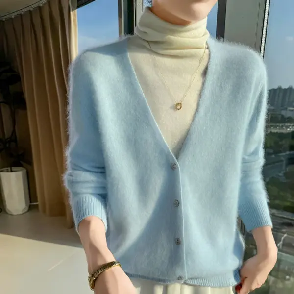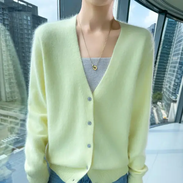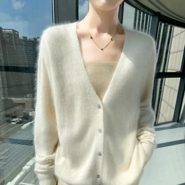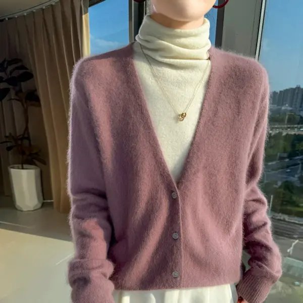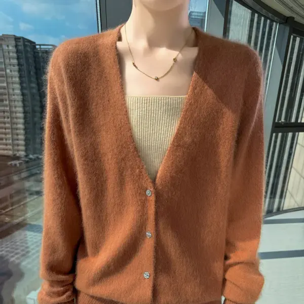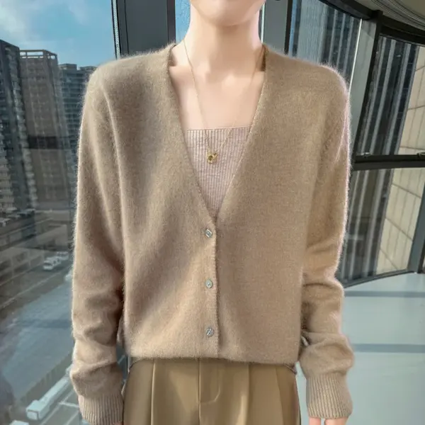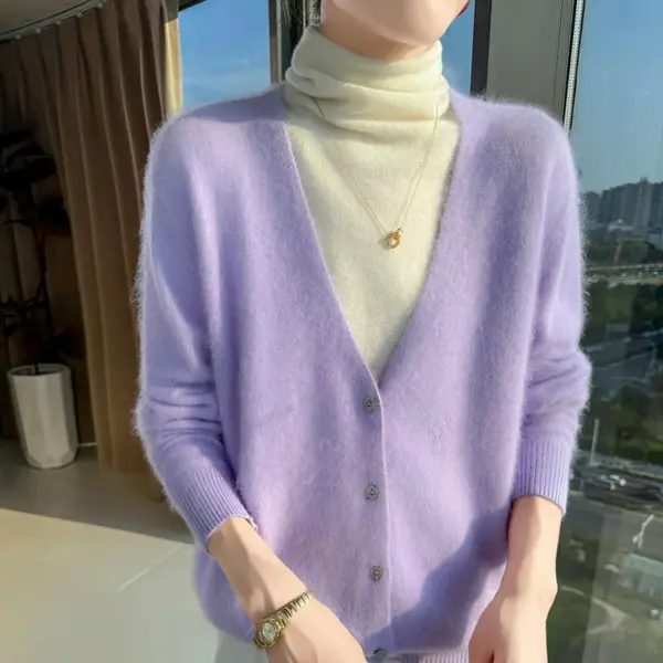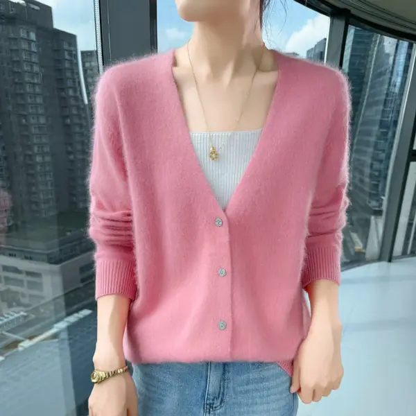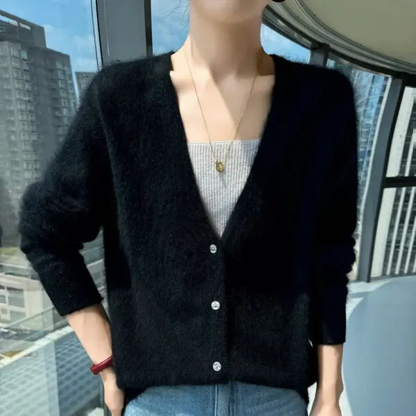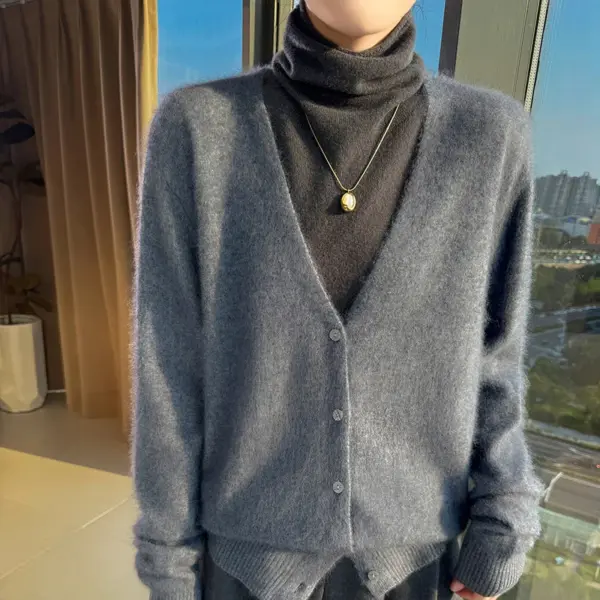 Pure mink cashmere cardigan women’s loose jacket Autumn and winter all match style V-neck Coat Commuter long-sleeved top Madam