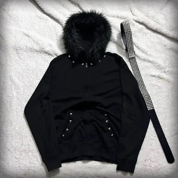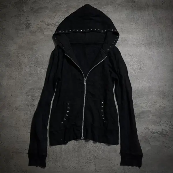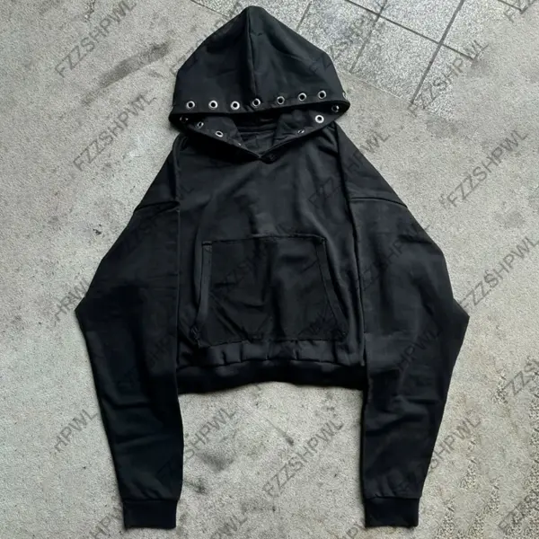 Pore decoration Hip Hop Y2K Hooded sweatshirt Solid color Punk Pullover Rock Goth Oversized Zipper Hoodie sweatshirt Streetwear