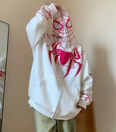 Original American Spiderman Embroidery Jacket Women’s Autumn New Fashion Street Loose Match All Hoodie Sweatshirt