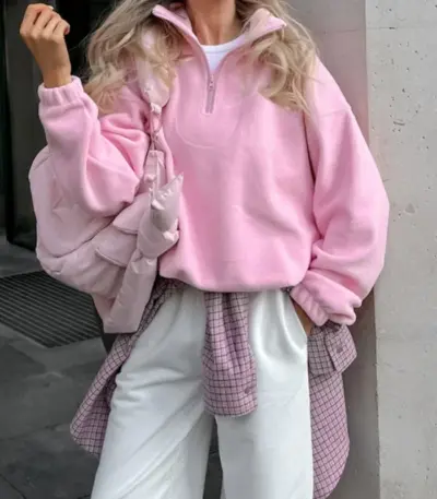 Pink Winter Lamb Fleece Hoodie Women Casual Loose Thick Zipper Long Sleeve Lapel Pullover Top Lady Hoodies Streetwear KPOP