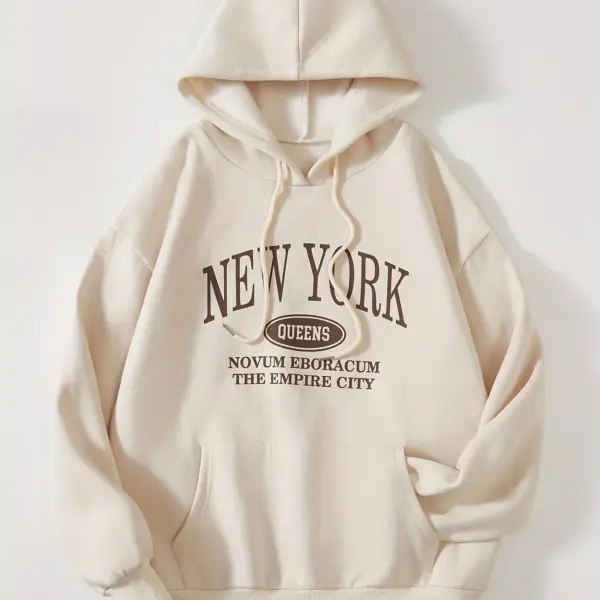 New York Queens Letter Printed Hoodies Street Fashion Women Sweatshirts Fleece Soft Pullover Crewneck Loose Female Tops Clothes