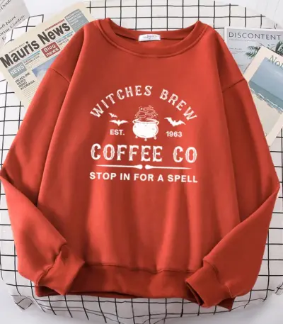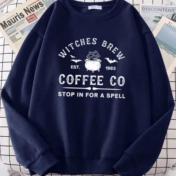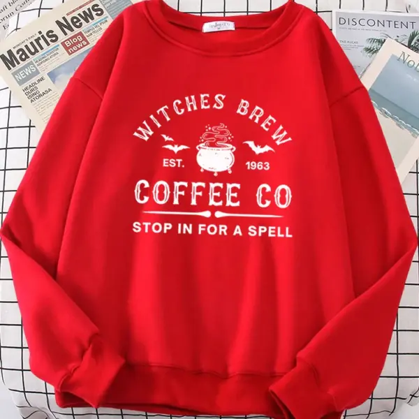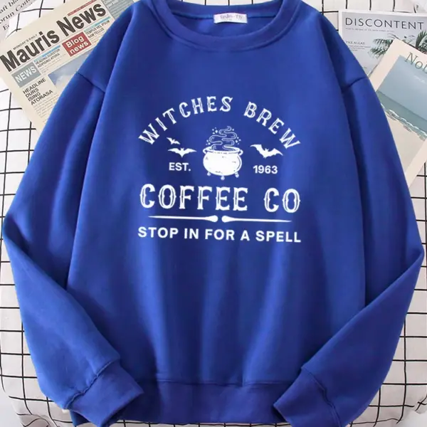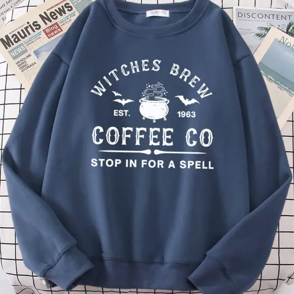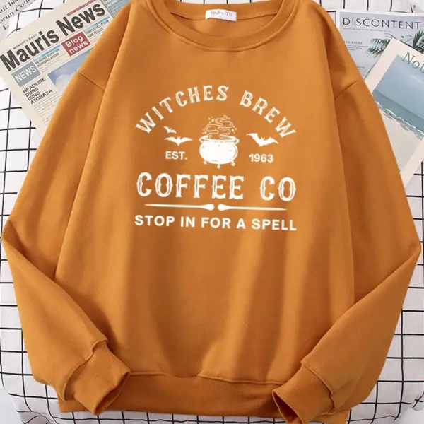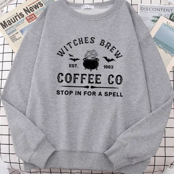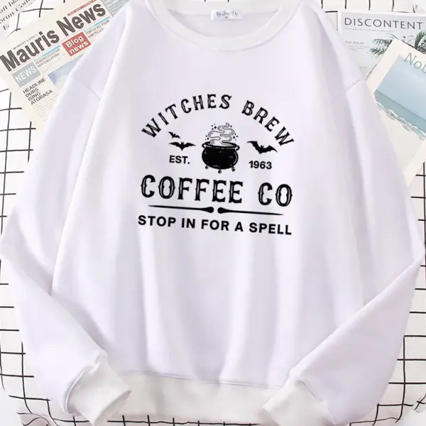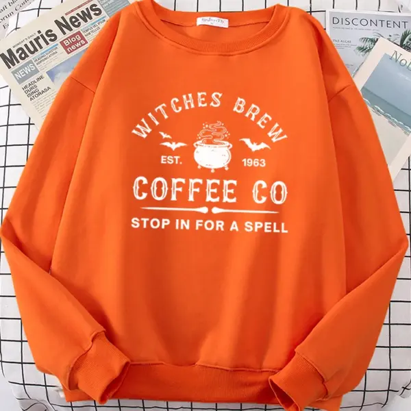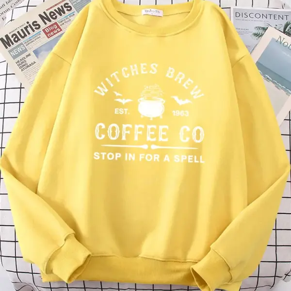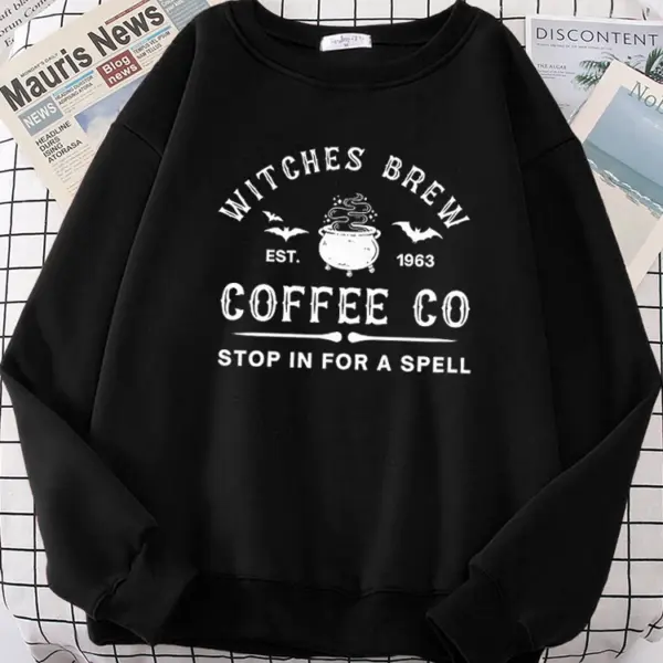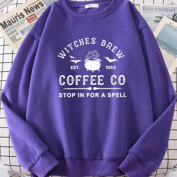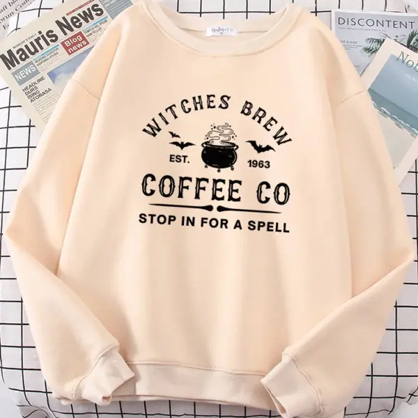 Witches Brew Coffee Letter Printing Simple Solid Color Letter Printing Womens Sweatshirts Long Sleeves Warm Pullover Clothes