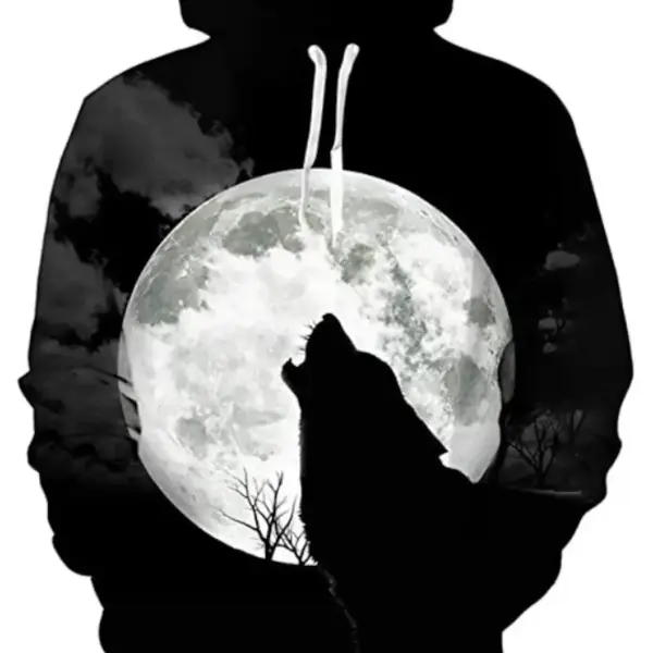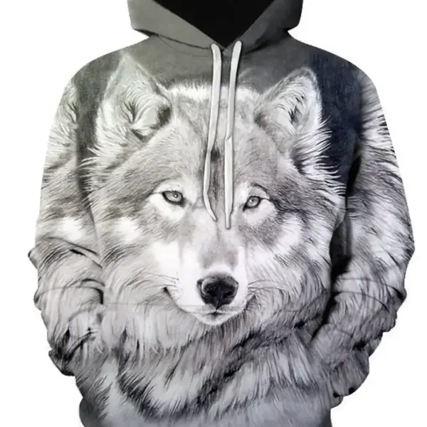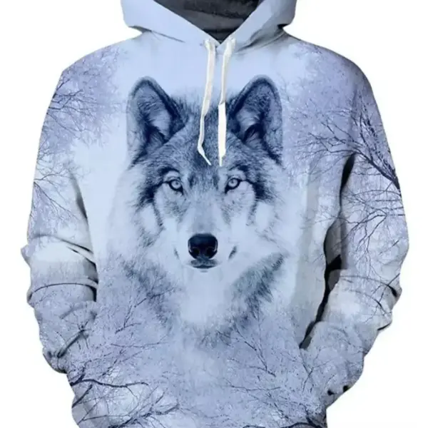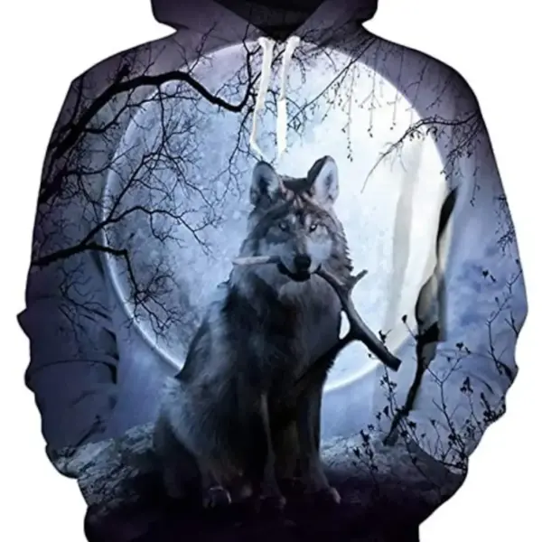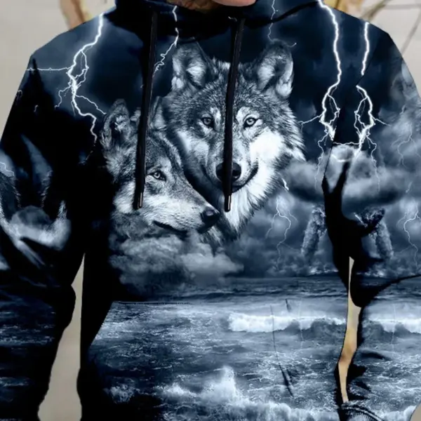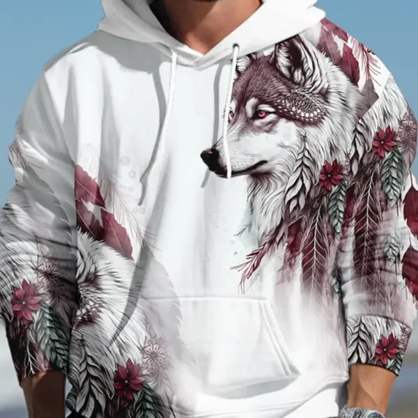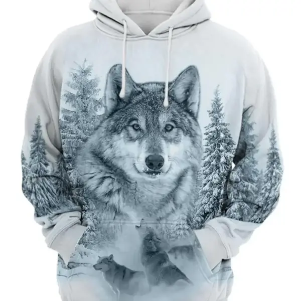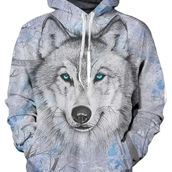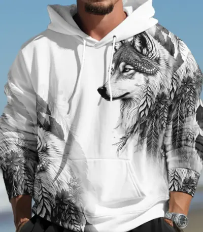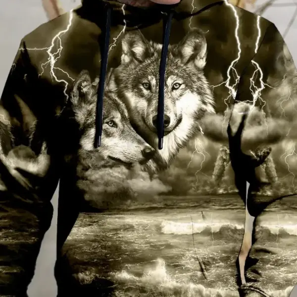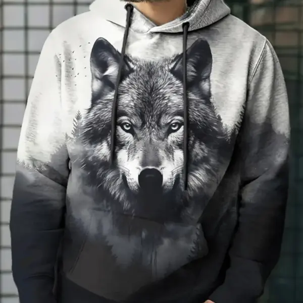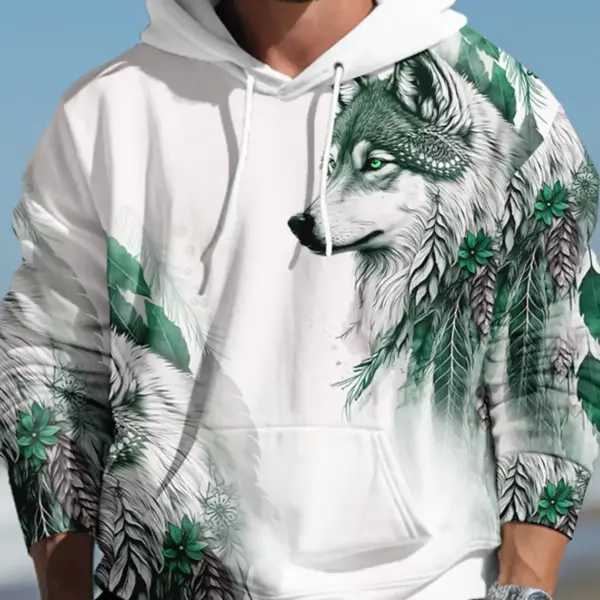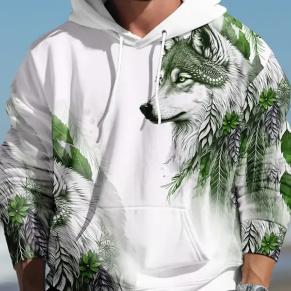 Wolf Graphic Men’s 3D Print Pullover Streetwear Hoodies Dark Green Long Sleeve Hooded Spring & Fall Designer Top