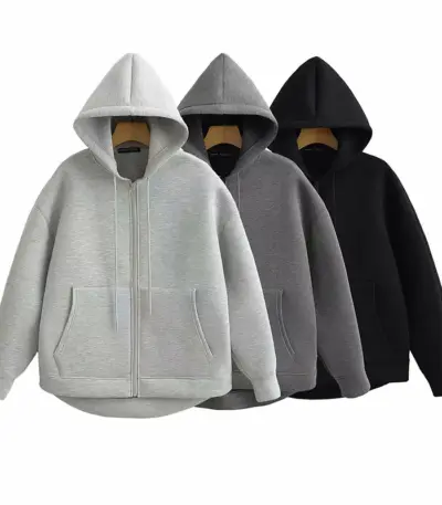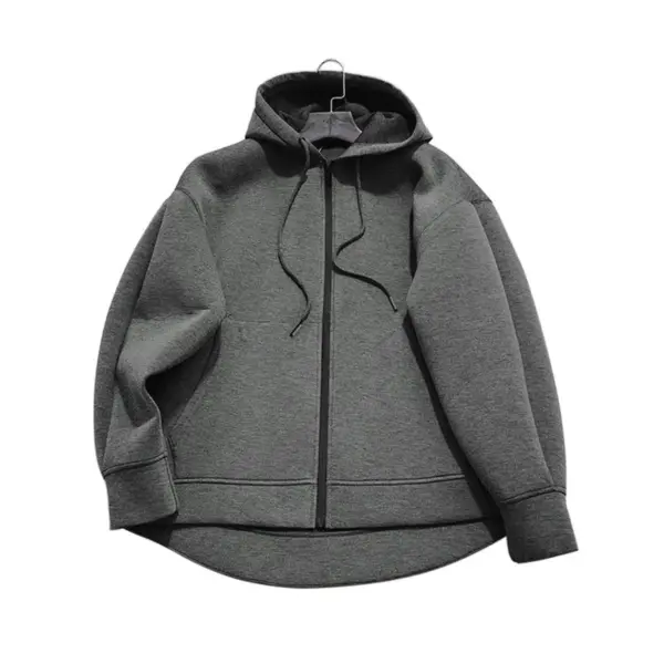 Women Hooded Sweatshirt Fleece Lined Hood Zipper Soft Fabric Double Zipper Design Slim Fit Casual Outfit Trendy Must Have Gray