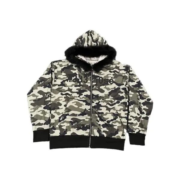 Winter Camouflage Pattern Hoodie women’s Warm Fluffy Fur Collar sweatshirt Casual Trendy Hooded zip-up 2025 New woman clothing