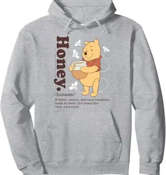 Winnie The Pooh Print Womens Cotton Hoodie New Style Plus Size Long Sleeve Fleece Lined Loose Fit Hooded Sweatshirt Warm