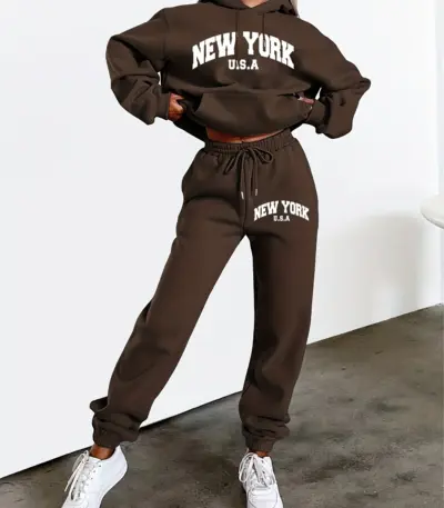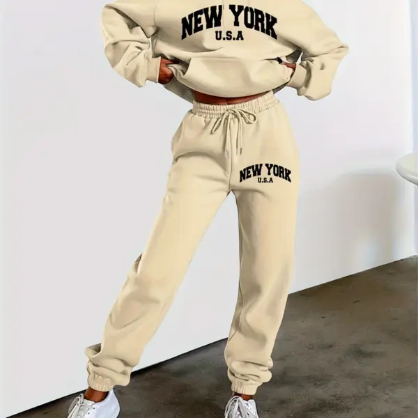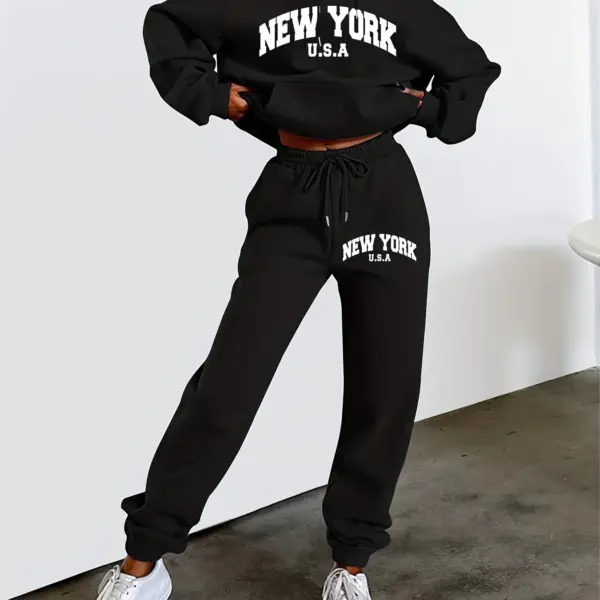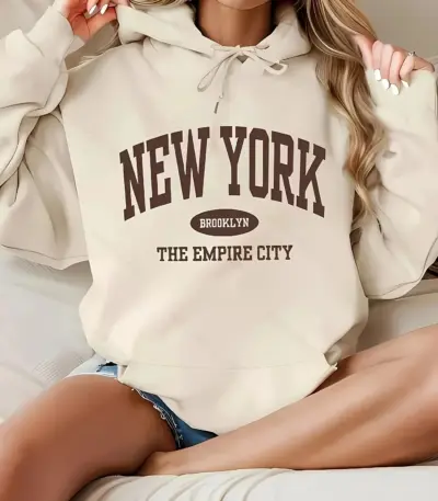 Women’s autumn and winter loose casual New York letter pattern printed velvet long sleeved hoodie hooded sweatshirt