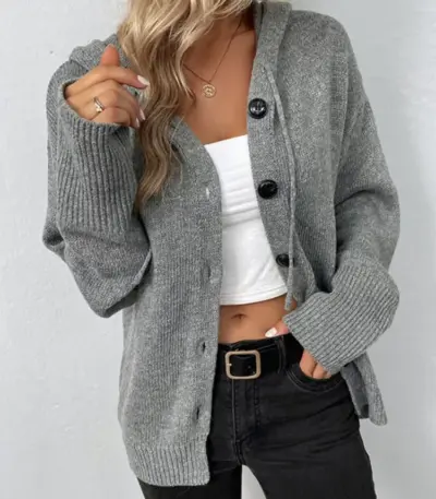 Women New Solid Hooded Sweatshirt Long Sleeve Knitted Cardigan Coat 2025 Autumn Winter Casual V-neck Buttons Loose Hooded Coat
