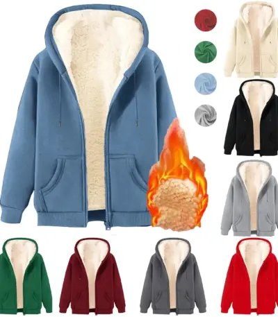 Women Solid Color Fleece Thickened Hoodies Large Size M-5XL Zip Up Warm Lined Thermal Sweatshirt Fall Winter Hooded With Pockets