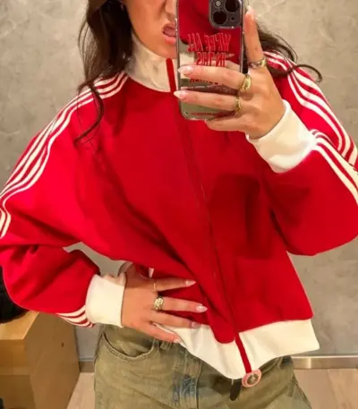 Women Sporty Zip Up Side Striped Jacket Autumn Casual Mock Neck Motorcycle Coats Tops Teen Girls Fashion Long Sleeve Sweatshirts