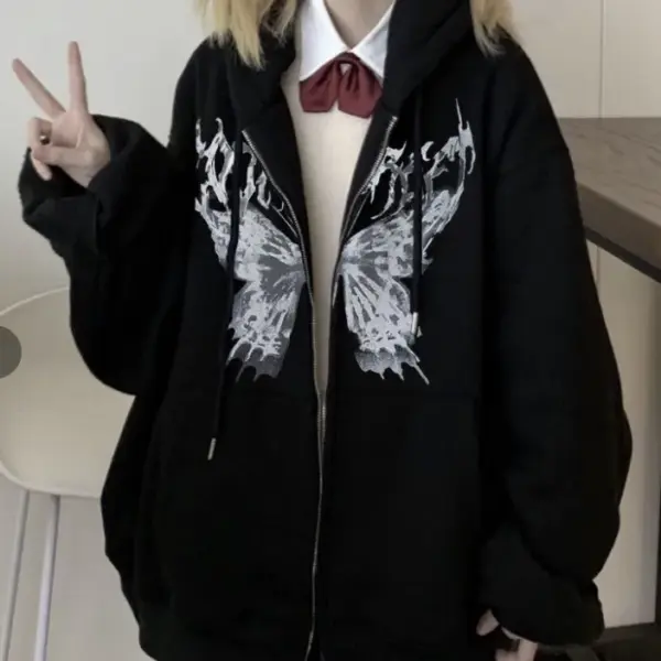Women Hoodies Harajuku Y2k Hoodie Zip Up Loose Oversized Sweatshirts Fall Casual Solid Color Long Sleeve Hooded Sweatshirt Coats
