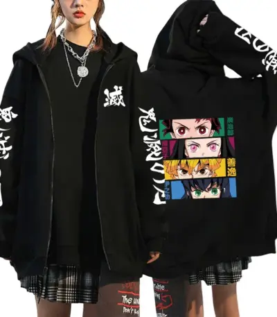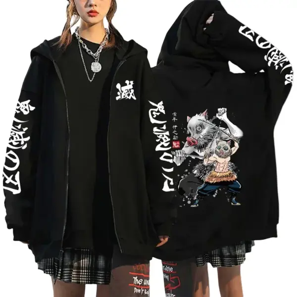 Anime Hoodies Demon Slayer Hooded Sweatshirts Zipper Jackets Tanjiro Zenitsu Inosuke Graphic Zip Up Casual Fashion Streetwear