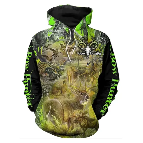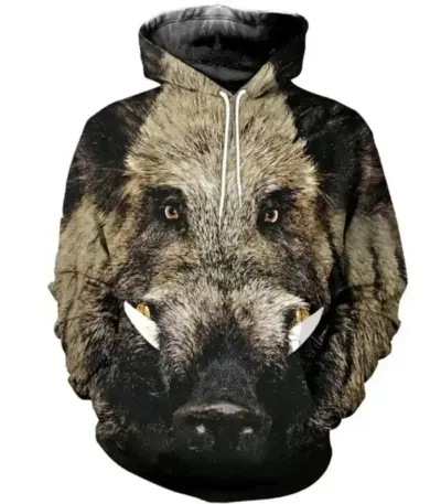 Autumn and Winter Hunting Suit, Long Sleeved Camouflage 3D Printed Autumn and Winter New Fun Wild Boar Men’s Hooded Sweatshirt
