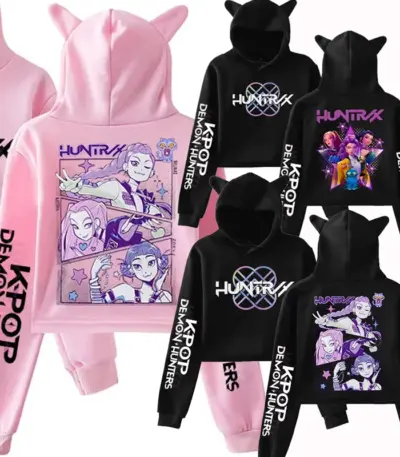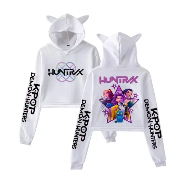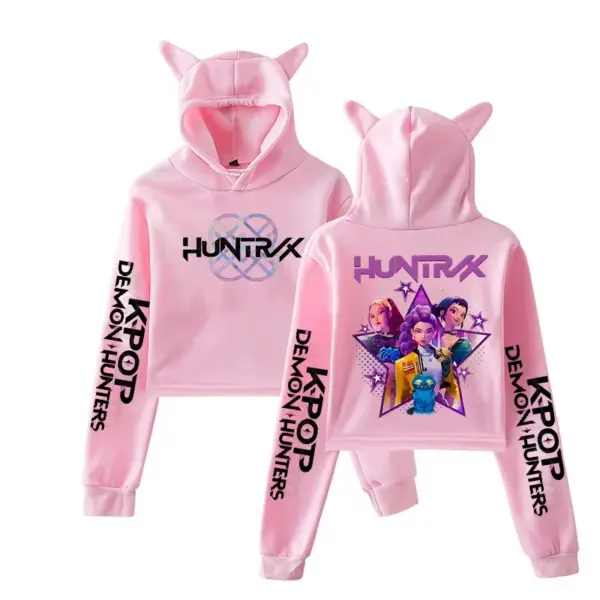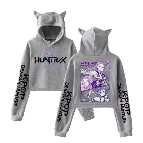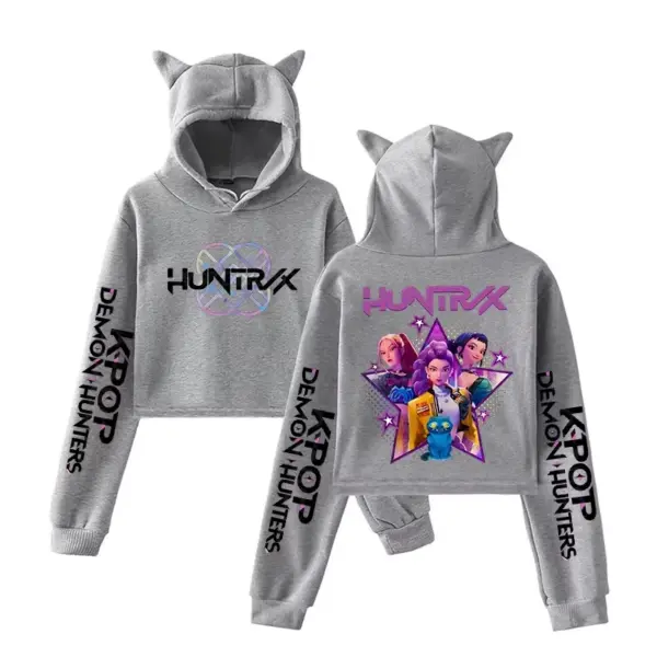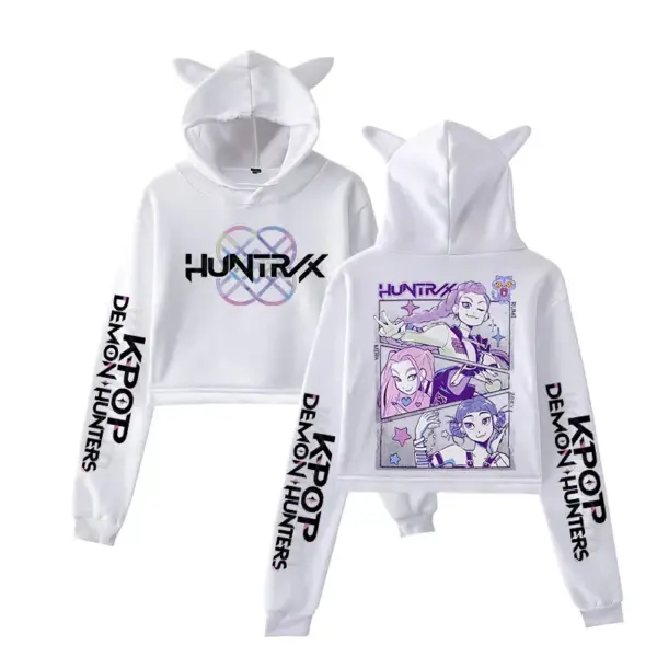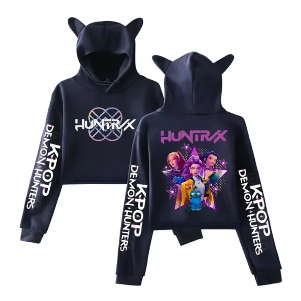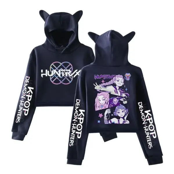Anime KPop Demon Hunters Cropped Hoodies Women Girls Fashion Streetwear Sweatshirts Long Sleeve Cat Ears Pullovers Short Tops