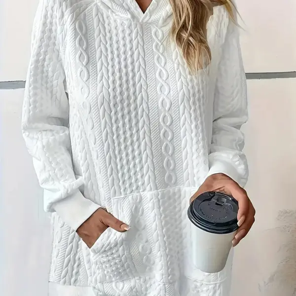 Autumn and winter new ribbed twist long-sleeved loose white top with hooded casual pocket sweater hoodie