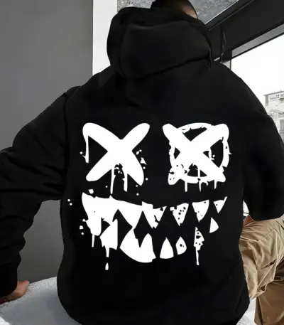 Autumn and Winter Men’s and Women’s Hoodies with Monster Face Pattern Printed Outdoor Street Wear