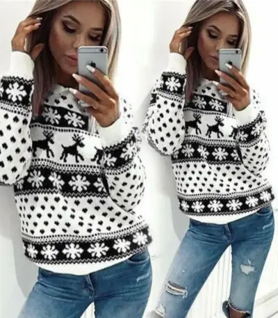 Autumn and Winter Europe and the United States New Foreign Trade Sweater Cartoon Deer Print Christmas Round-necked Long-sleeved