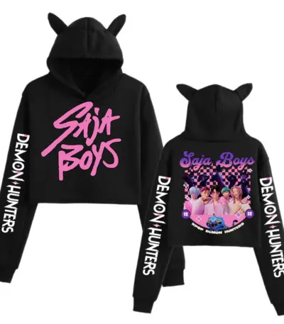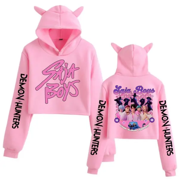 Anime K-Pop Demon Hunters Saja Boys Crop Tops Cat Ears Sweatshirt Long Sleeve Girls Fashion Hoodie