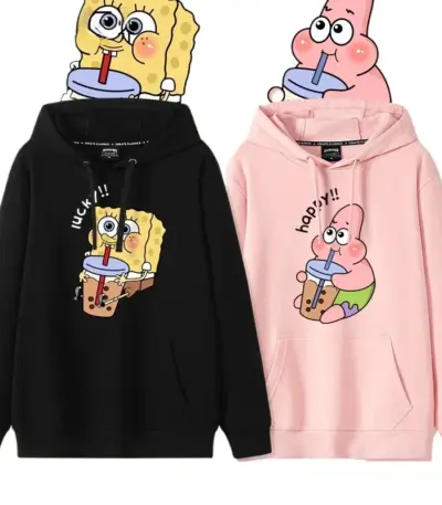 Autumn and Winter Hoodies Women Anime Hoodie Couple Wear The Same Style Cartoon Print SpongeBob Lovers Sweater Loose Hoodie Coat