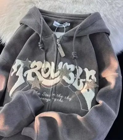 Autumn Long Sleeve Hooded Tops Fashion Zipper Embroidery Y2K Harajuku Streetwear Hoodies Jackrts Women Loose New Sweatshirts