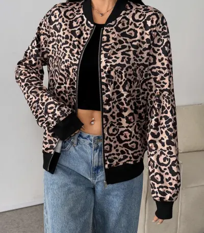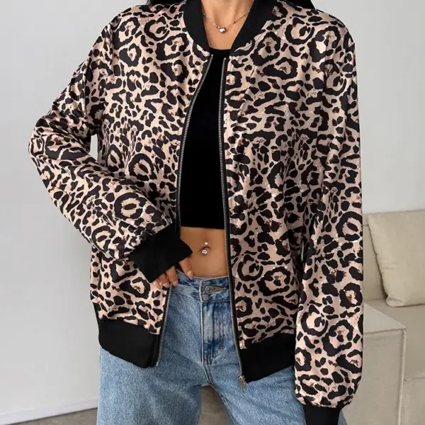 Autumn New Women’s Tops Coat Streetwear Fashion Long Sleeves Leopard Print Zippers Hoodie Casual Slim Female Versatile Clothing