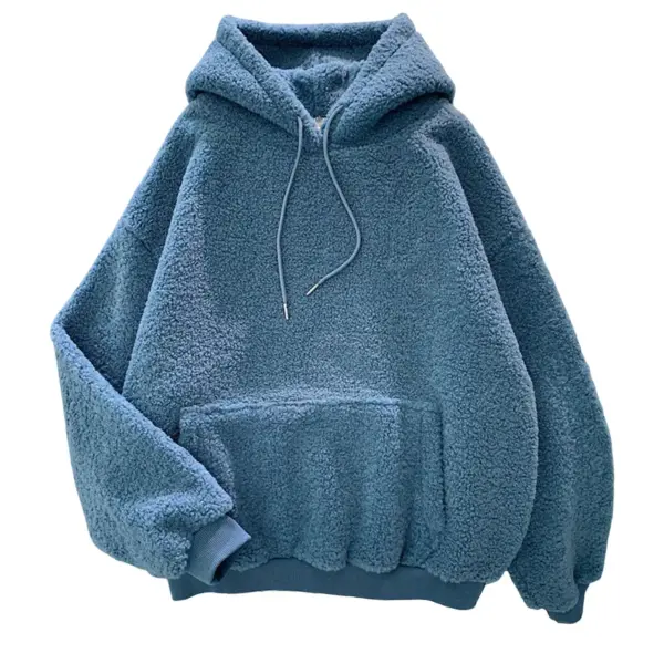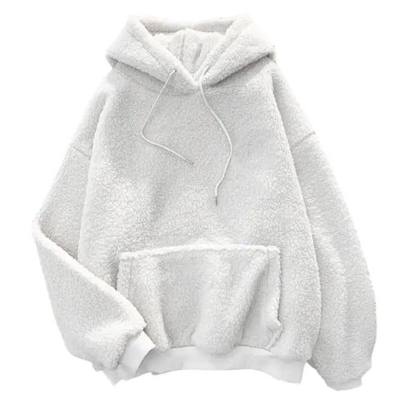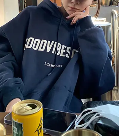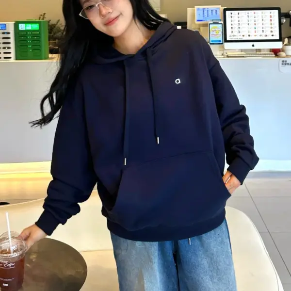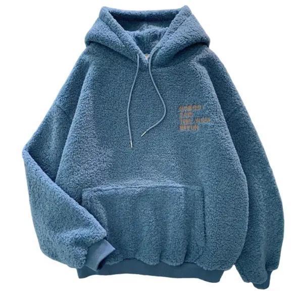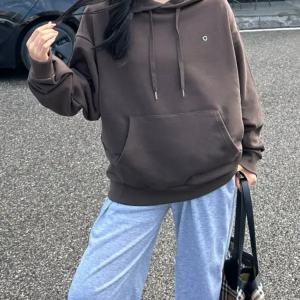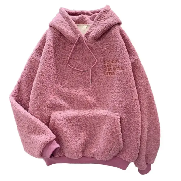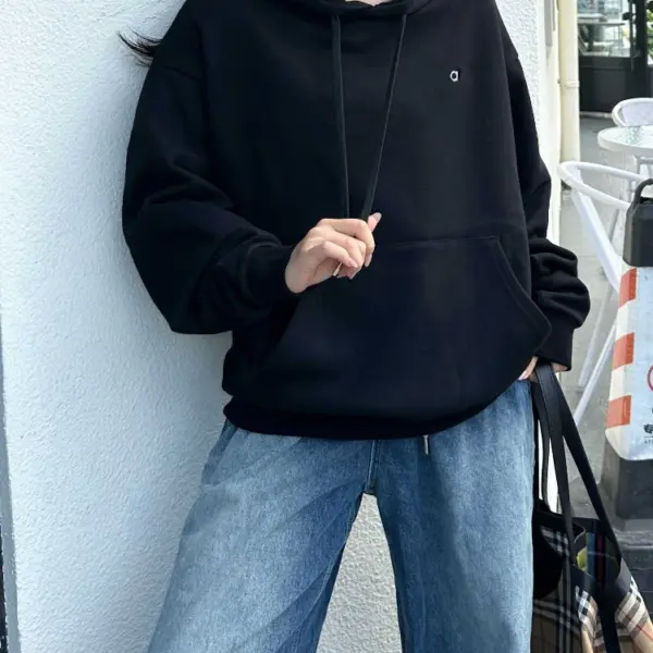 Autumn Fleece Hoodie Solid Color Letter Hooded Korean Fashion Sweatshirts Long Sleeve Top Drawstring Pockets Loose Hoodies