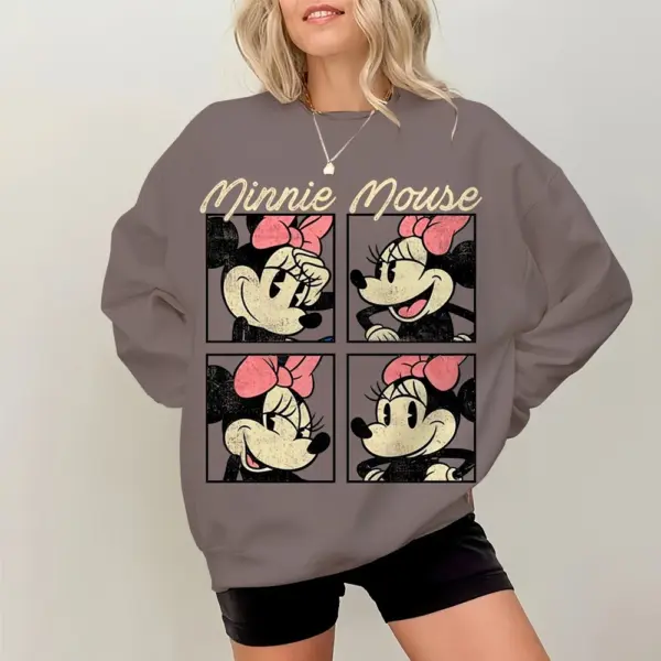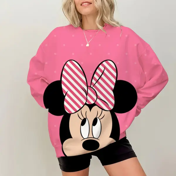 Autumn Winter Cartoon Disney Minnie Mouse Print Hoodies For Women Long Sleeve Sweatshirt Casual Pullover Couples Tops