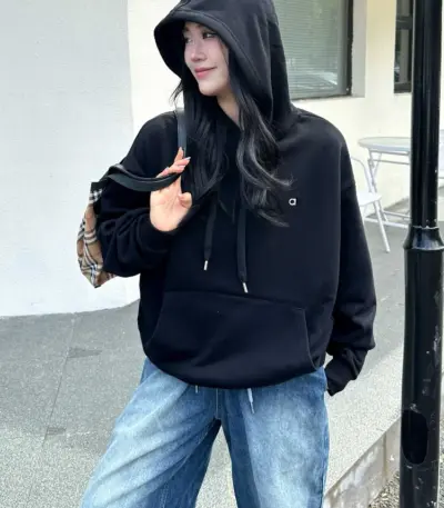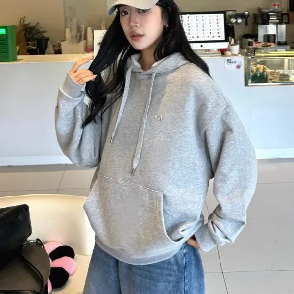 Autumn New Cotton Sweatshirt Hoodie Fashion Loose Casual Sports Drawstring Hoodie Black Gray Classic Versatile Hoodies Women