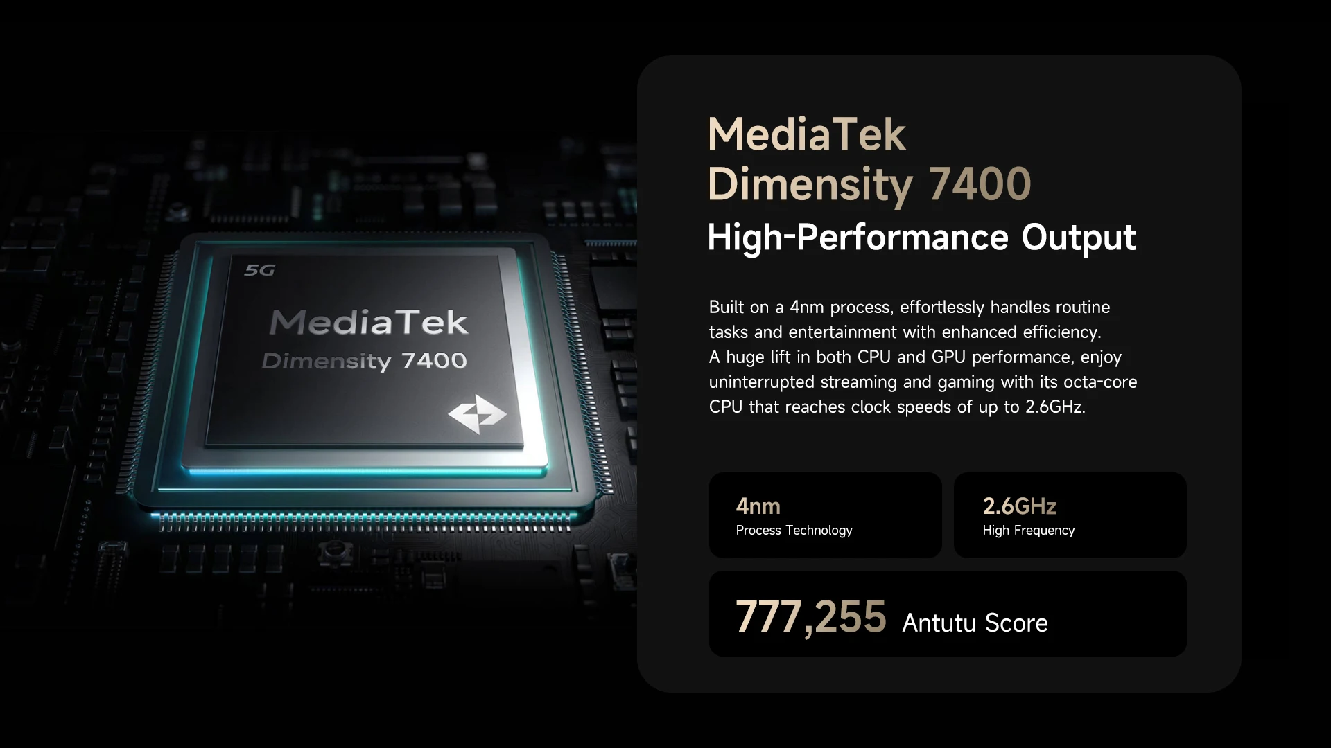 CPU:MediaTek Dimensity 7400    GPU :Mali-G615 MC2, 1400MHz