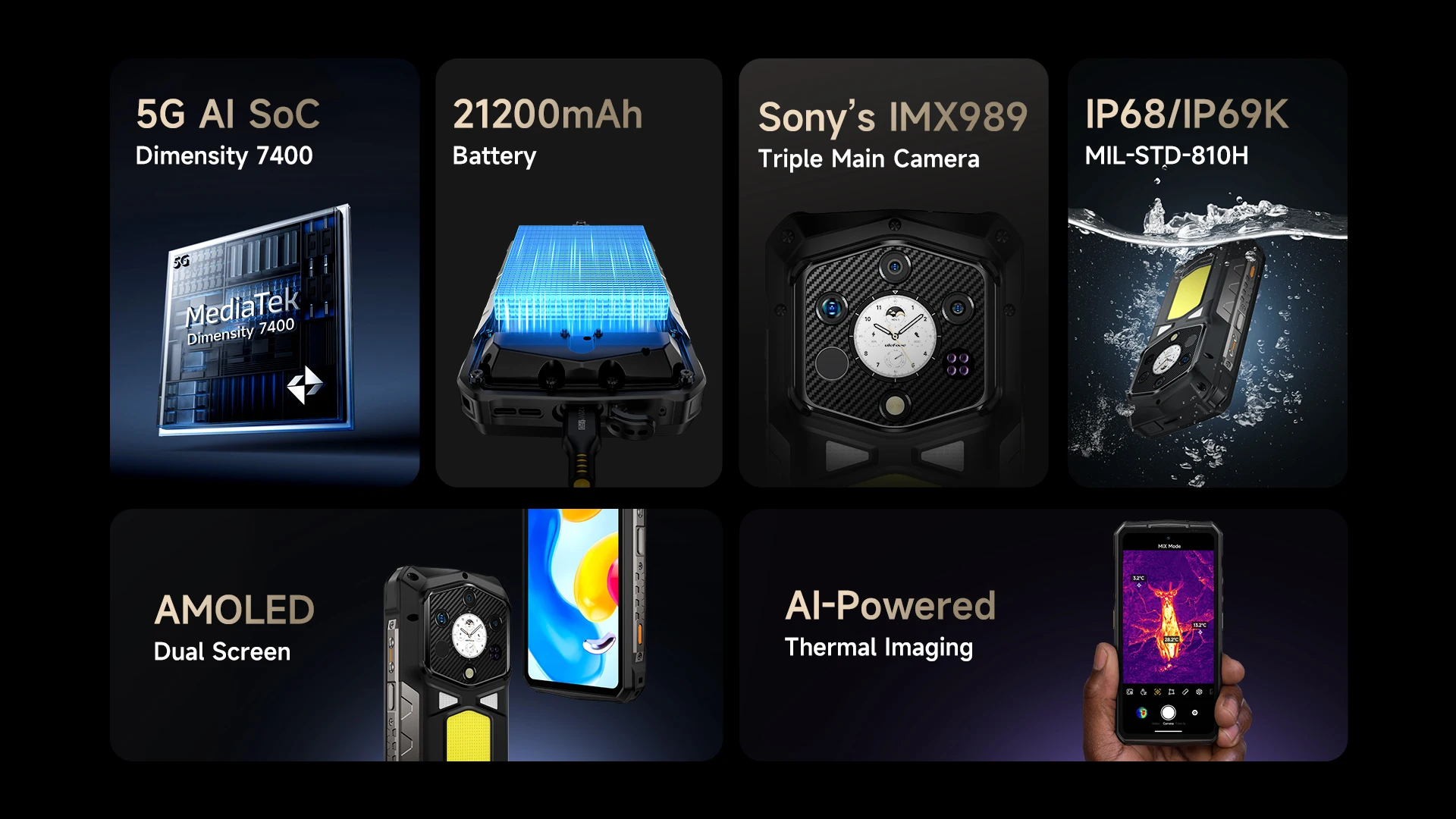 【2025 New】Ulefone Armor 29 Pro Thermal Version 5G Rugged Phone 21200mAh 120W Smartphone Android 15 6.67″ 120Hz 512GB ROM NFC