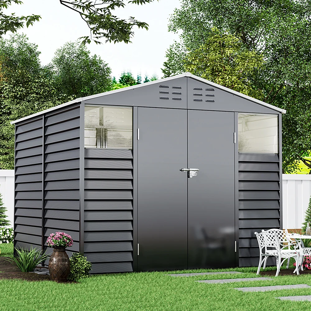 【Breeins】Outdoor Lockable Steel Storage Shed Building CharcoalModern style with Windows