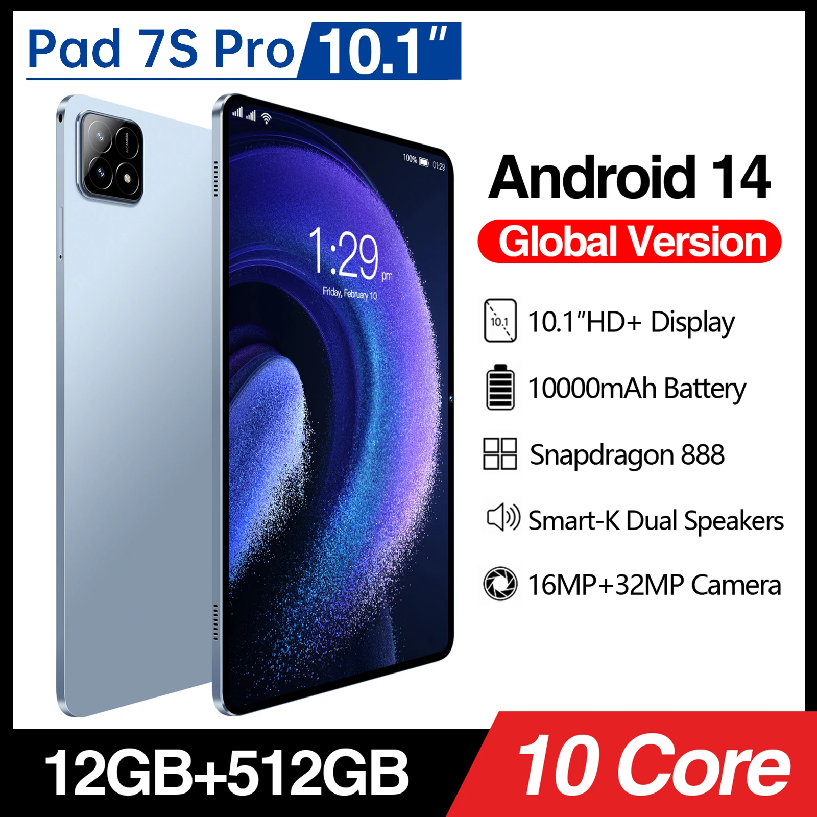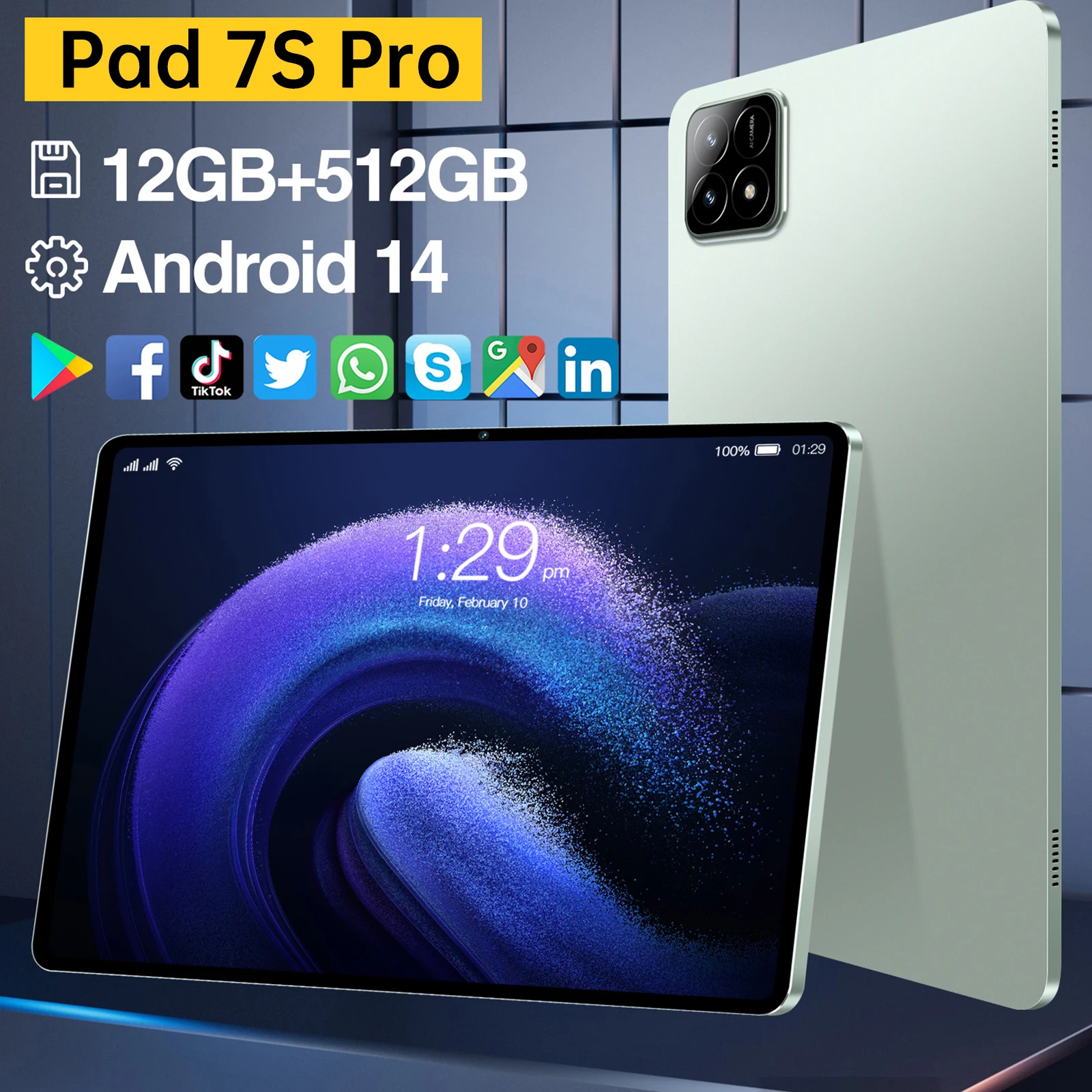 Be the first to review “【Global Version 】2025 New Original Tablets Pad 7S Pro Android 14 16GB+1TB 10000mAh 5G Dual SIM Card WiFi GPS 10.1″ HD 4K Tablet”