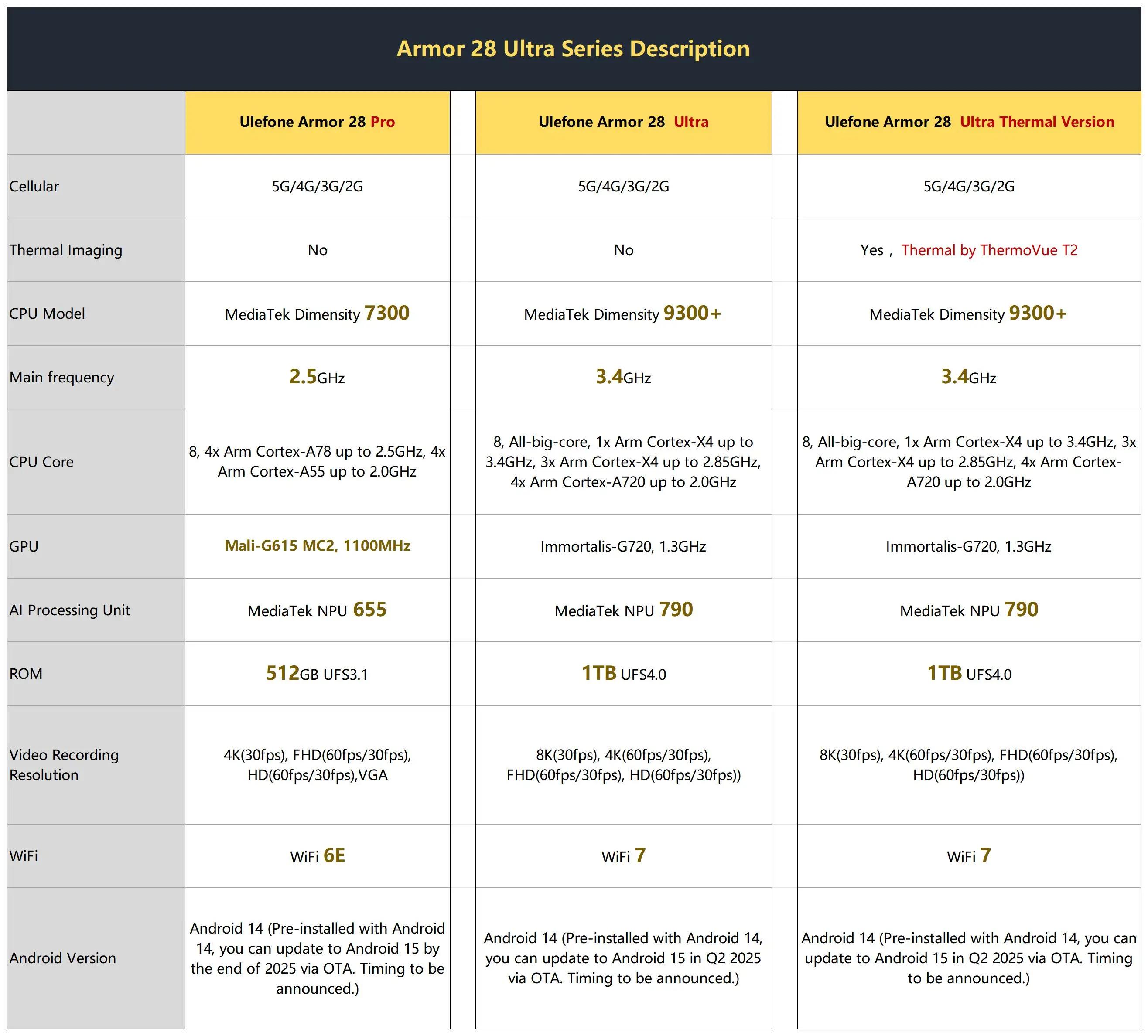 “The Armor 28 Pro, pre installed with Android 14, will receive an QTA