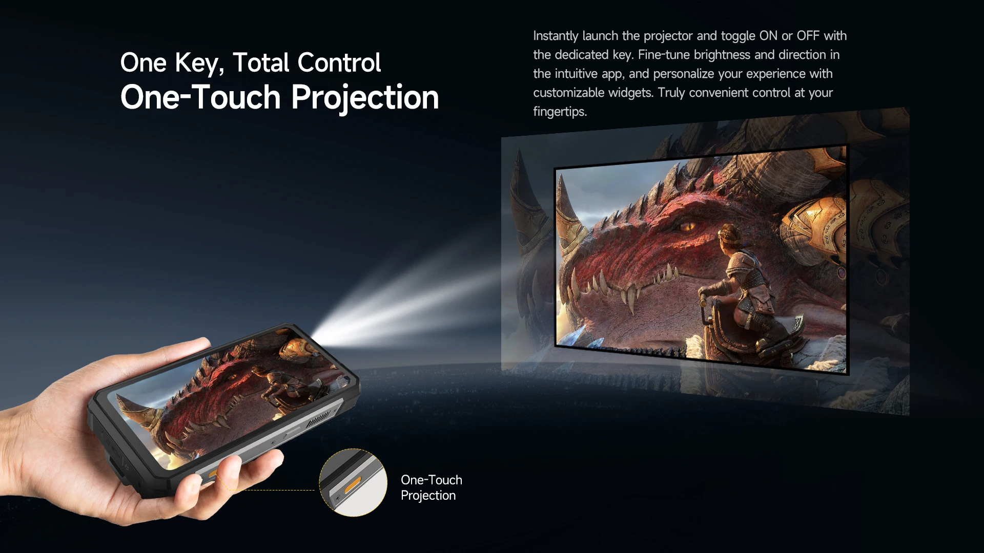 Integrated with 150 lumens high-bright DLP projector, Armor 34 Pro transforms into a portable projector. Enjoy crisp, clear projections on any surface, turning any location into your personal theater. Share movies, presentations, engineering drawings, or photos with ease, all on a stunning large display.