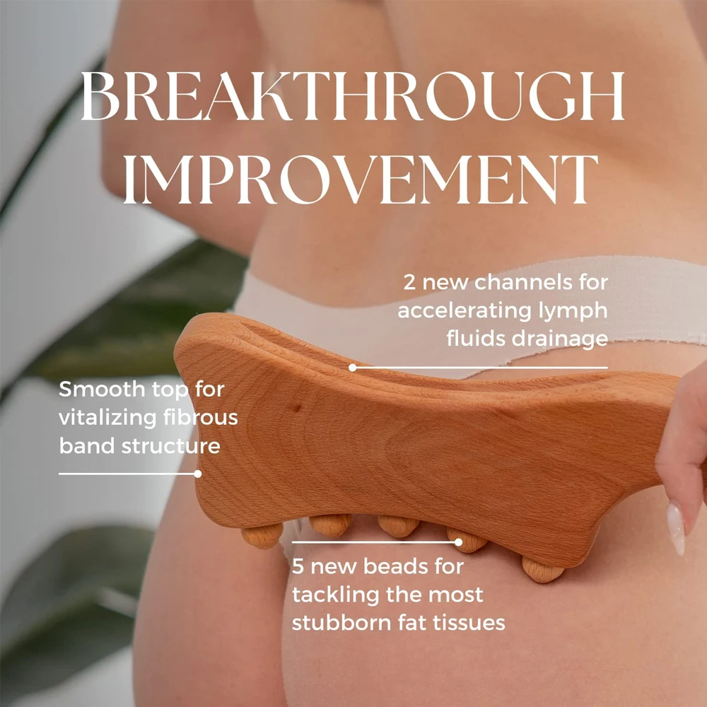 1. Start seeing changes in your physical appearance as a result of healthier vital processes from lymphatic drainage massager. Consistent use of our wood therapy tools for body shaping can help you break down stubborn fat, accelerate lymphatic fluid circulation, strengthen the structure of fibrous septate, and relieve muscle soreness.