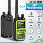 One click quick copy frequency, 5R MINI will search for another radio transmission frequency and privacy code. Finally, press the menu to store the frequency. Two walkie talkies can communicate normally. Communication is smooth and unobstructed, there is no need to worry about not knowing each other’s frequency.
