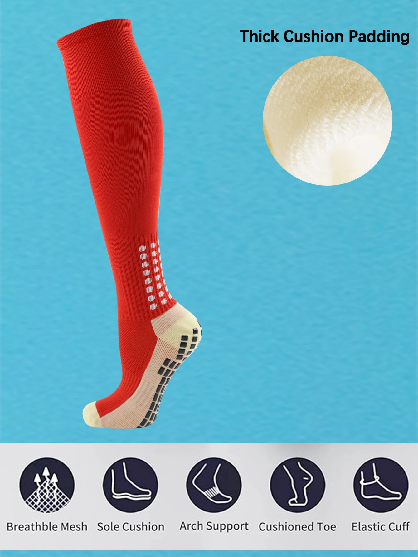 【Padded Athletic Socks】Anti-slip football socks provide thick cushioning for the toe and heel, add extra durability and comfort in high-wear areas, and effectively absorb sports shock absorption to reduce friction, prevent foot blisters, and avoid holes for longer life. This Grip Socks Football Ankle is designed with arch support, which not only prevents the rotation of the sock body during exercise, but also provides long-lasting comfort and improves arch fatigue.
